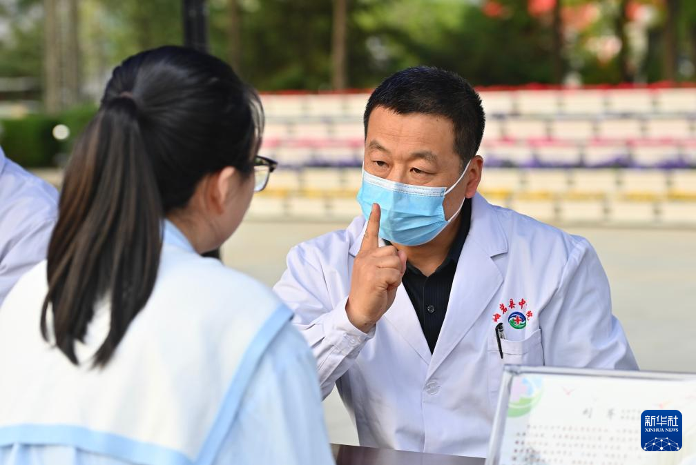 5月29日,在岫岩县中医药文化夜市现场,医生为市民义诊。