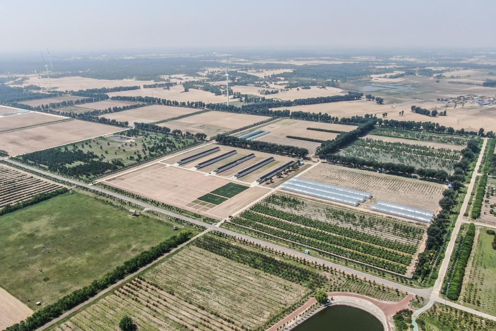 辽宁省农业科学院沙地治理与利用研究所章古台基地(无人机照片)。新华社记者潘昱龙摄