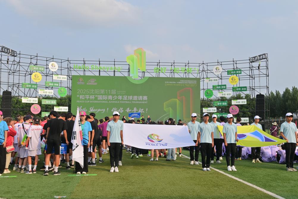 新华网沈阳8月13日电 12日,2025沈阳第十一届“和平杯”国际青少年足球邀请赛在沈阳“和平杯”世界足球公园开幕。本届“和平杯”开幕式以“‘11’的力量”为主题,取意“第十一届、11号球衣、11人团队”。