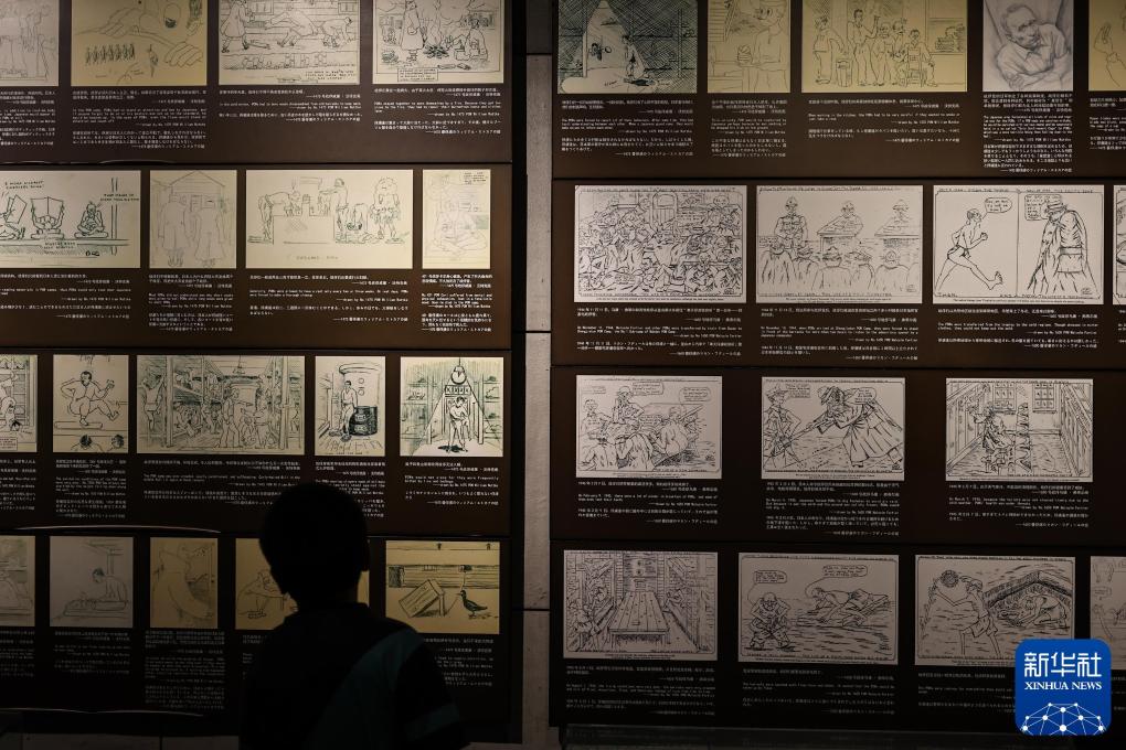 8月5日,参观者在沈阳二战盟军战俘营旧址陈列馆内观看展品。