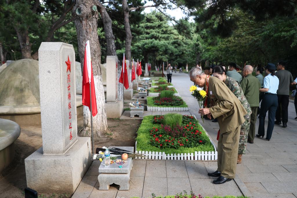 9月10日,抗美援朝老战士程茂友、南启祥、解立松等来到沈阳抗美援朝烈士陵园祭奠英烈。