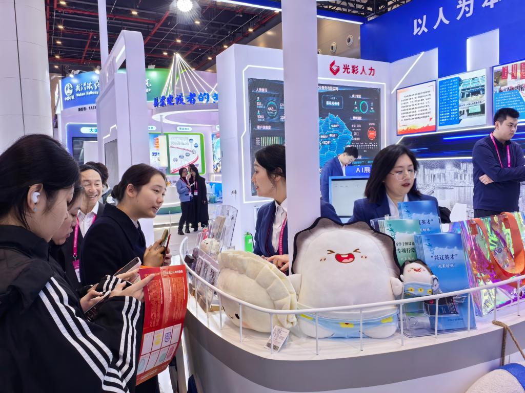 在大会集中展示区,辽宁两个展位通过视频、图片和文字等多种形式,全面展现人力资源服务创新成果,全景呈现沈阳、大连两市人力资源服务业发展脉络、服务人才就业成效,发布“辽宁省人力资源服务业高质量发展”宣传片、“兴辽英才计划”人才政策宣传册、博士后科研岗位信息、全省高层次人才需求信息,发放辽宁文旅纪念品等,吸引大量高校毕业生和参会观众驻足观看。